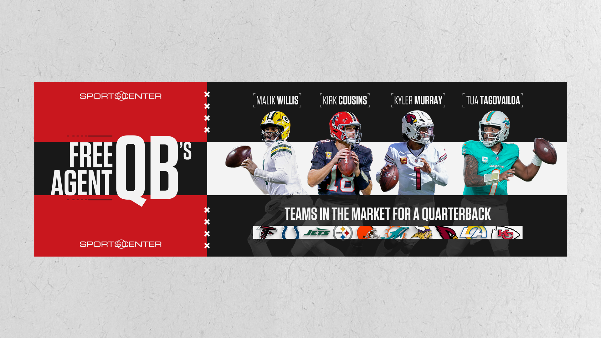 This Thursday Night Football graphic is my first official custom graphic to hit live television! It debuted on SportsCenter (10.30.25). This one is sized to meet the East Wall 6-pack screen size.